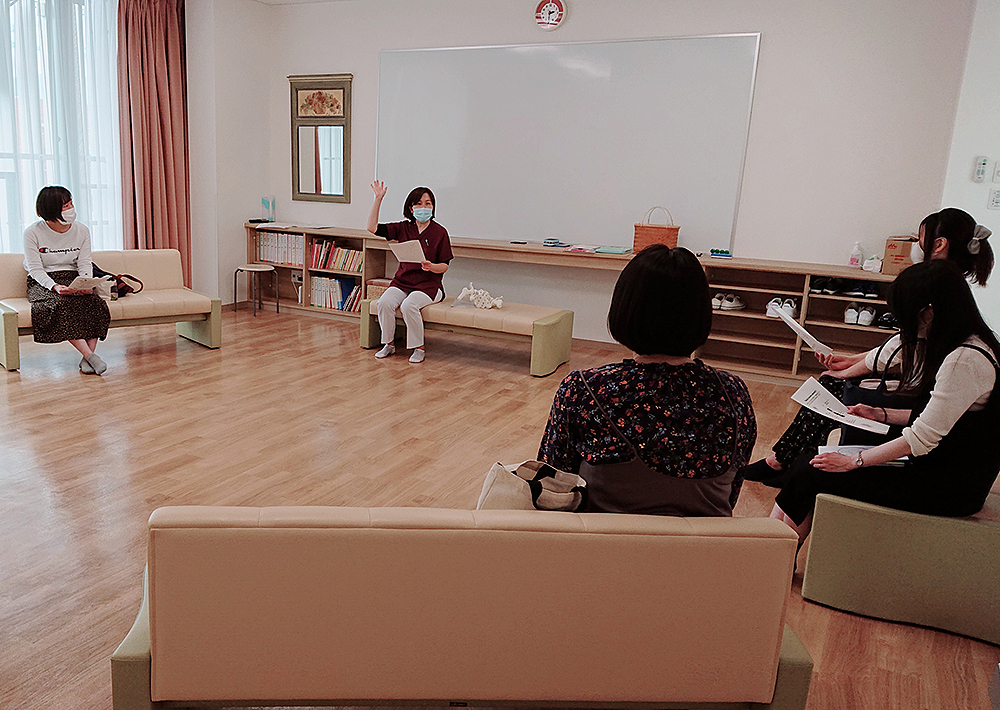 産婦人科の母親学級で、産前の女性に向け講師を担当する佐々木さん